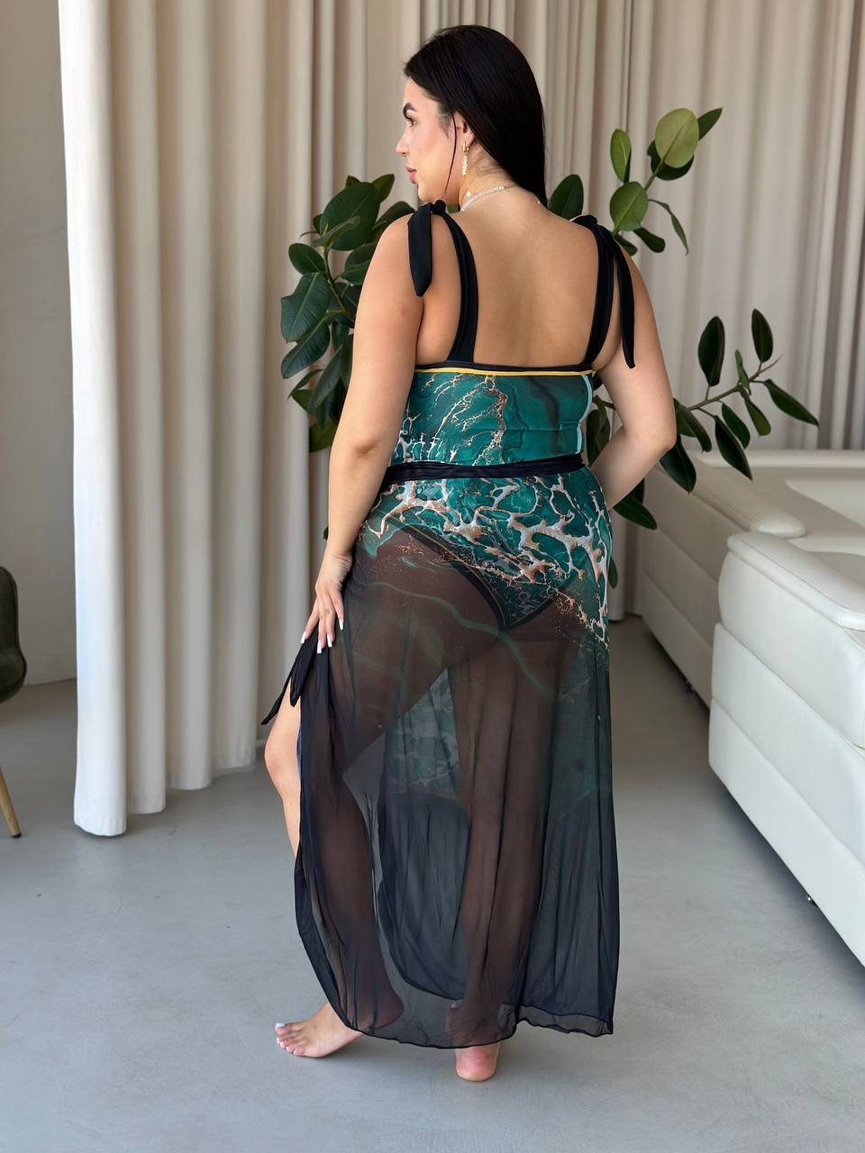 🖤Класичний чорний, витончений асиметричний виріз, прозорі вставки, що загадково підкреслюють талію та стегна😍Ідеальний варіант для тих, хто хоче виглядати ефектно, але не надто відкрито👍