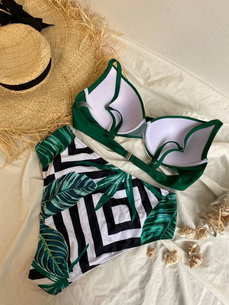 ✔️Бюстик з твердою чашкою з кісточками та широкими бретелями тримає форму навіть під час активного відпочинку, а високі трусики на талії — не перетискають, не врізаються, не сповзають👍